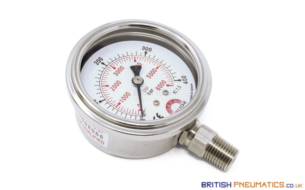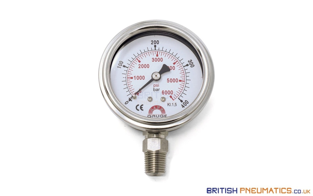 Watson Stainless Steel 400 Bar (6000 PSI) Pressure Gauge (Bottom Entry) 1/4" BSP