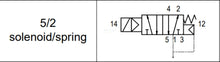 'Quick Specs': MPN 034011, 1/8" BSP 5/2 solenoid/spring valve, electrically operated. Made in Italy.