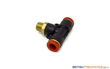 This is Watson Industries Branch Tee pneumatic fitting that has 10mm Push-In ports on two of the ends, and a 1/4" BSP male thread on the middle end. This is a real value proposition due to its quality to price ratio, and is one of our popular pneumatic fitting products in the UK.